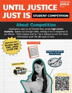 The Until Justice Just Is Student Competition is a call out to Central New Jersey youth designed to encourage high school students to reflect on the importance of racial justice in society and how we can contribute to making justice a reality. This year, participants are invited to submit an essay, video, or visual art piece that answers the following: