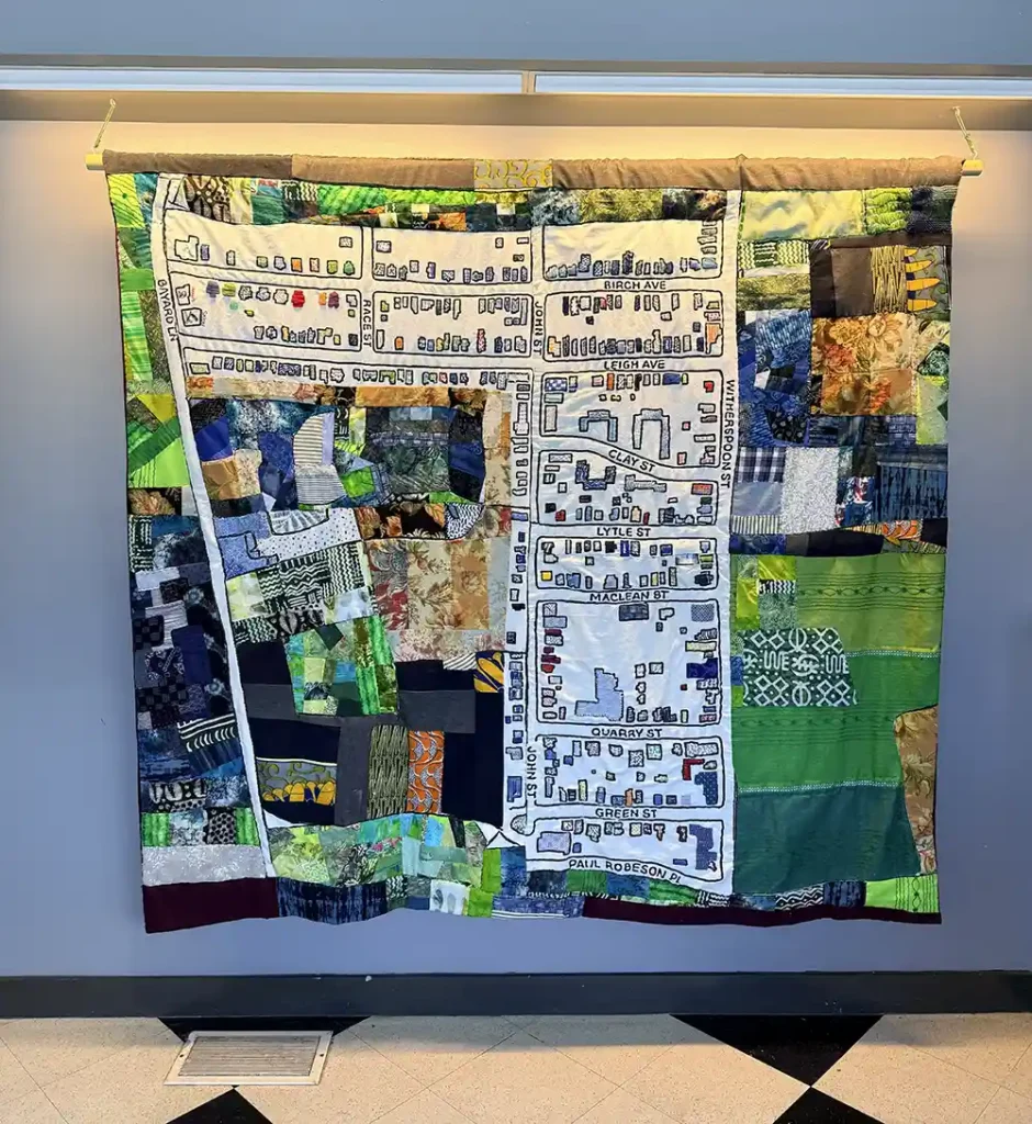 2 Shirley Satterfield, Minnie Craig, Lois Craig, Cynthia “Chip” Fisher and quilter Gail Mitchell, Witherspoon-Jackson Community Quilt, 2005 reprint